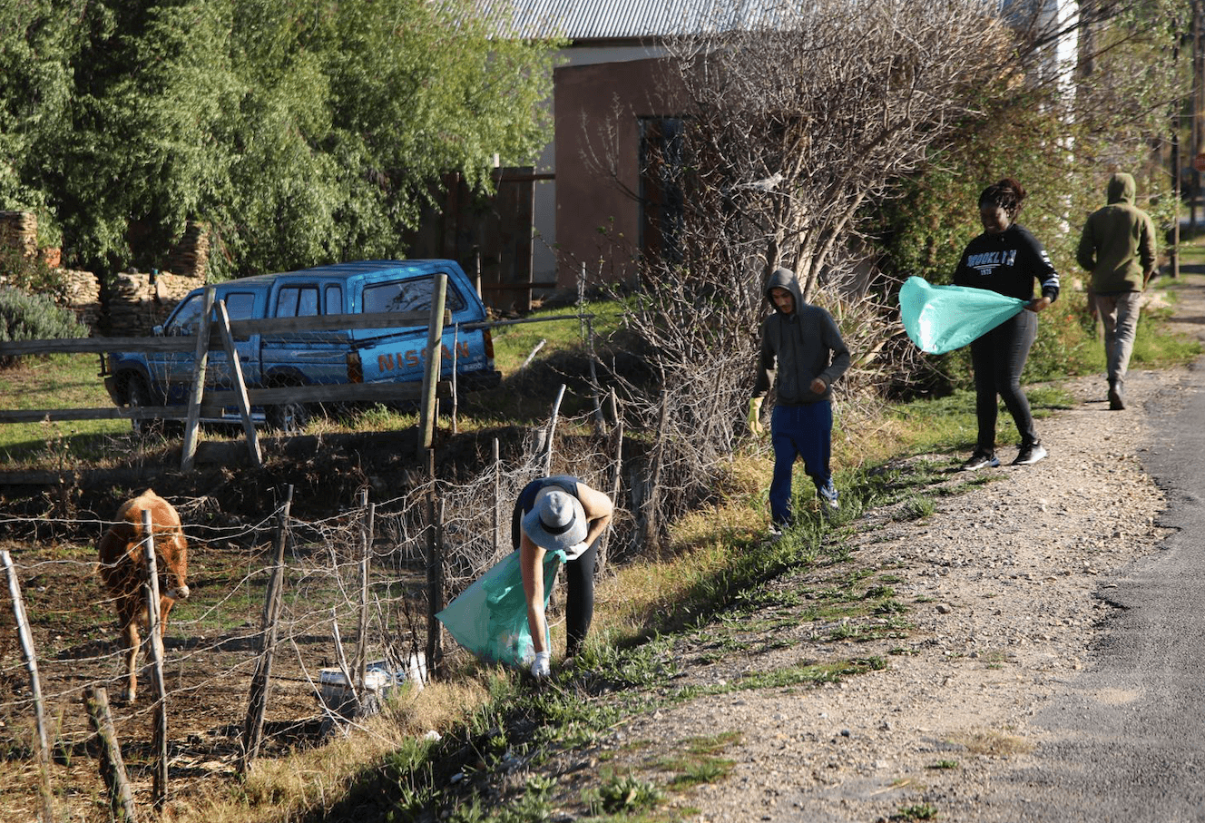 We are working in conjunction with the Swellendam Municipality and the Solid Waist Manager Johan Van Niekerk to set up a Green Circular economy where all items that you throw out are source separated to become recycled items before they go to the dump. We are working with Francois from Barrydale Recycling where we teach the youth to pick up glass and plastic in black bags that they deliver to him for a small income.